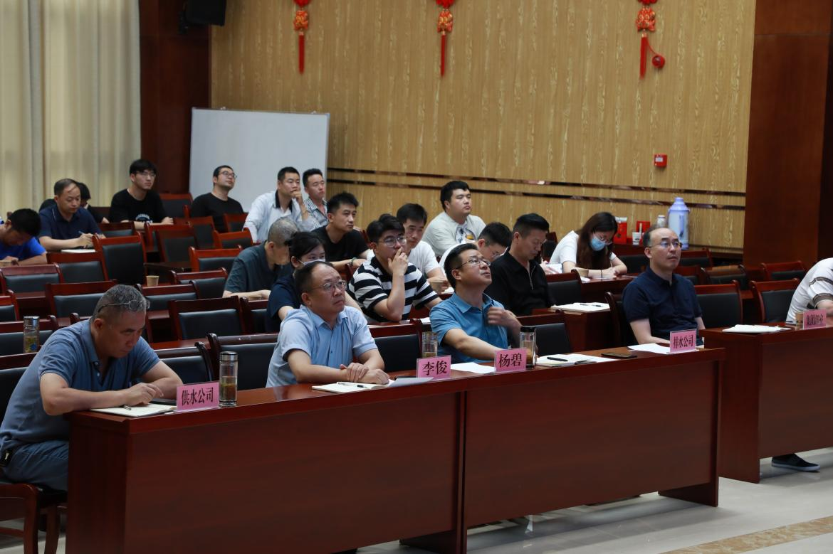 然后,在水务集团总经理杨碧主持下,梁龙喜副教授向水务集团中层以上领导做了安全生产专题培训讲座。主要从有限空间作业、深基坑工程、高大模板工程等三方面内容展开。他结合多年从业经验和工程案例,深入浅出地讲解了安全生产的原则以及应用实践,指出安全生产是企业发展的基石,严格遵守安全操作规程,树立安全意识,守住安全底线,做好安全工作。
