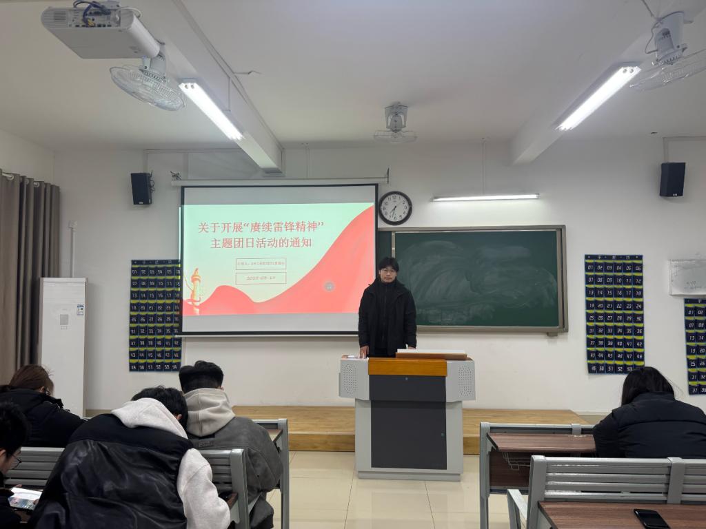活动期间,各班团支书以“传承雷锋精神,践行青春使命”为主题积极组织班会,带领同学们重温了雷锋同志的生平事迹和经典名言,学习了雷锋精神的深刻内涵和时代价值。通过观看雷锋事迹纪录片、分享雷锋故事、朗诵雷锋日记等形式,展现了雷锋同志热爱党、热爱祖国、热爱社会主义的崇高理想和坚定信念,以及他服务人民、助人为乐的奉献精神。一个个生动的事例,让同学们深刻感受到雷锋精神的内涵和力量,使雷锋精神在集体中生根发芽。